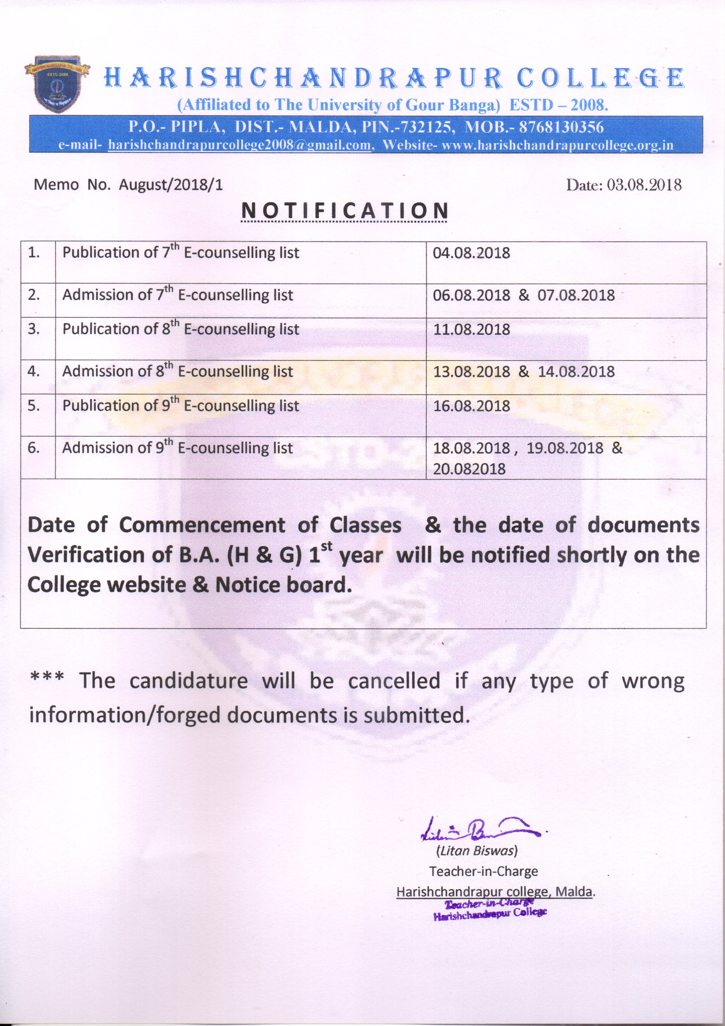 | 80 | Class commencement & Documents Verification of B.A. 1st Year, 2018-19 | 18/08/2018 | View |