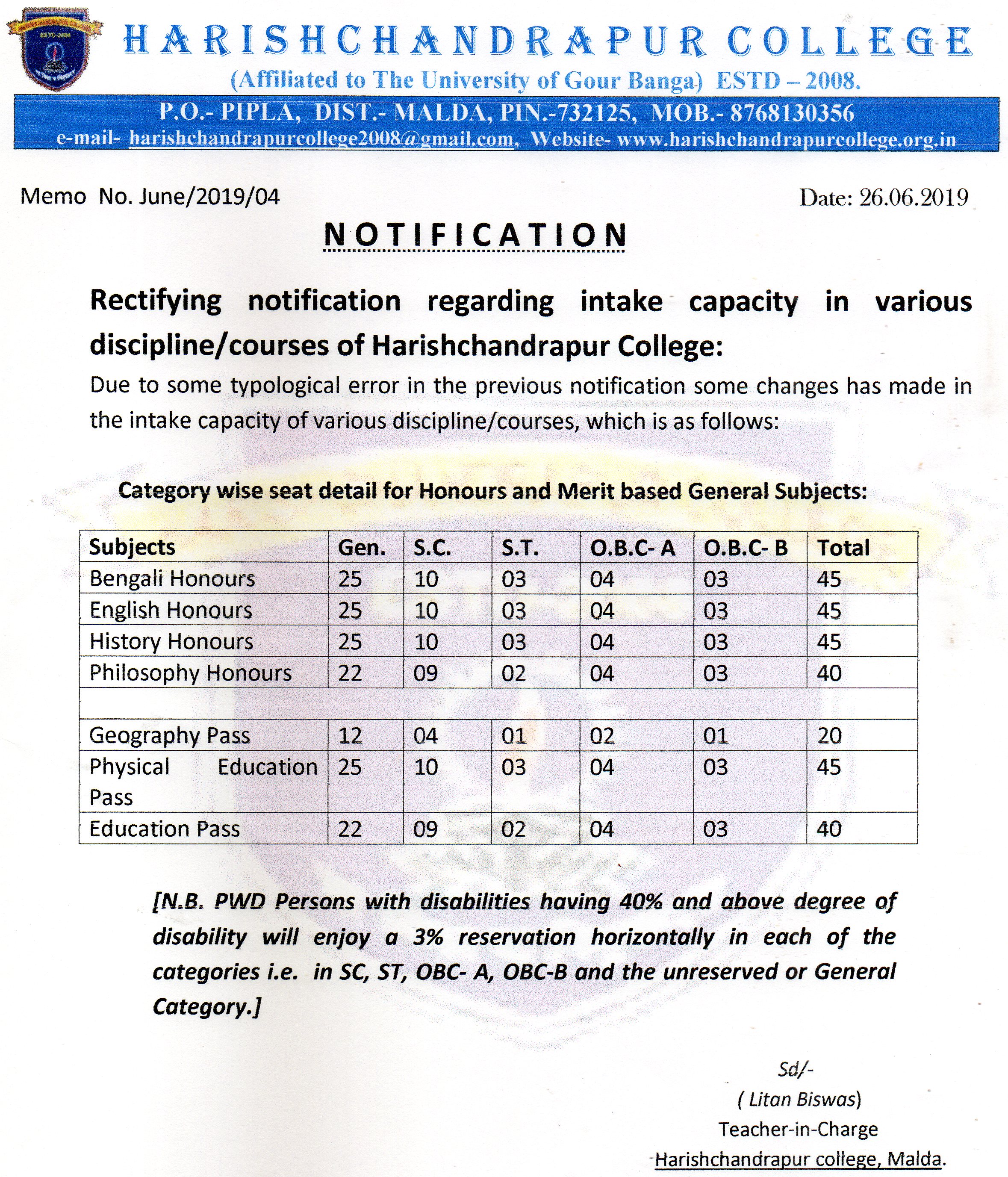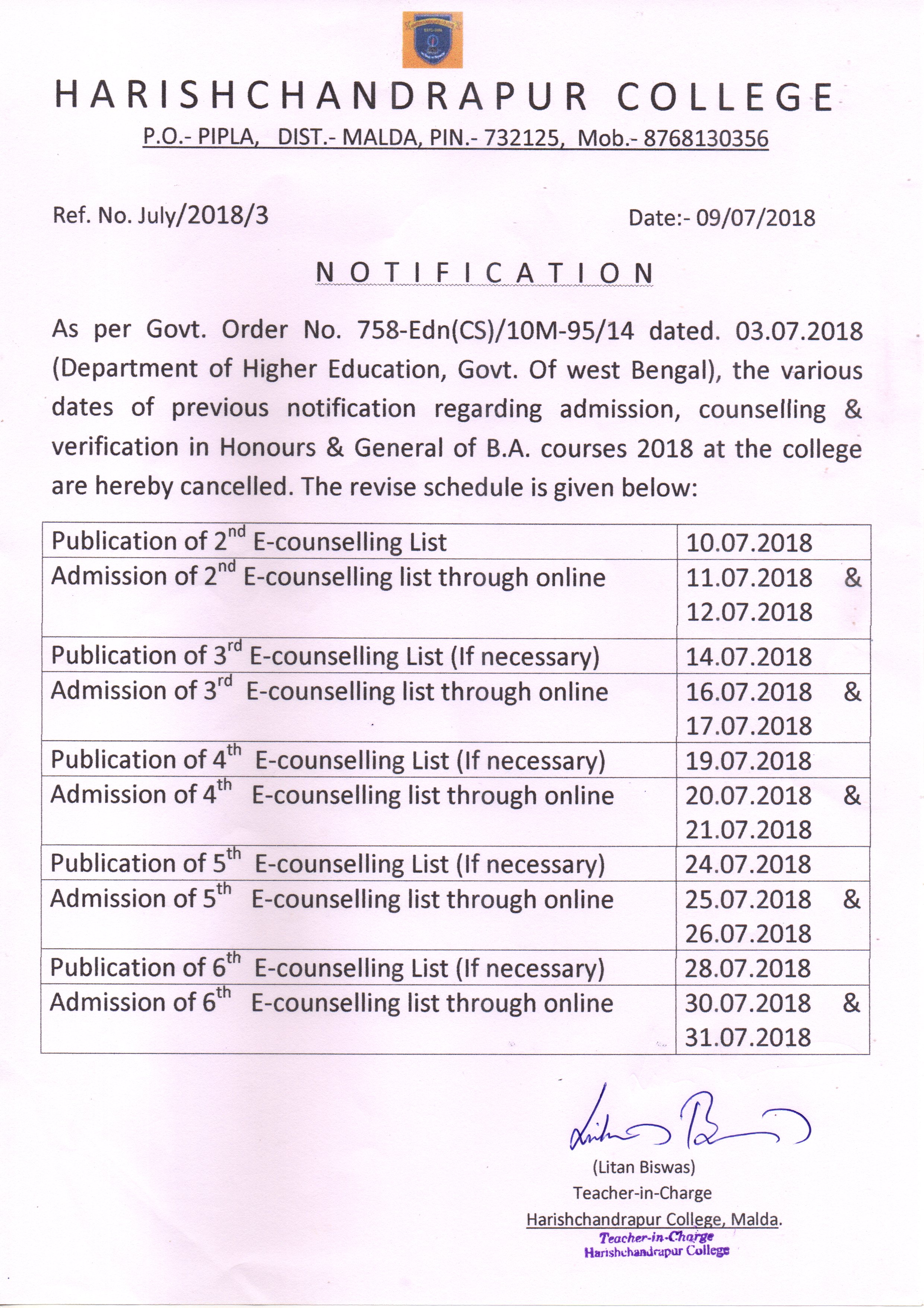 | 16 | Admission Notice, Sem- I, 2023-24_ in Bengali | 30/06/2023 | View |